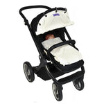 The Dooky Sunshade in romantic Leaves Black is universal and easily fits, in seconds, to any infant carrier, stroller or pushchair. Because of its unique design, Dooky is easily adjustable – simply roll up or down using the Velcro strips, keeping the sunlight away from your little one’s face. When baby is asleep, simply roll all the way down to create a dark and quiet atmosphere.