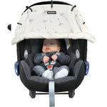 The Dooky Sunshade in romantic Leaves Black is universal and easily fits, in seconds, to any infant carrier, stroller or pushchair. Because of its unique design, Dooky is easily adjustable – simply roll up or down using the Velcro strips, keeping the sunlight away from your little one’s face. When baby is asleep, simply roll all the way down to create a dark and quiet atmosphere.